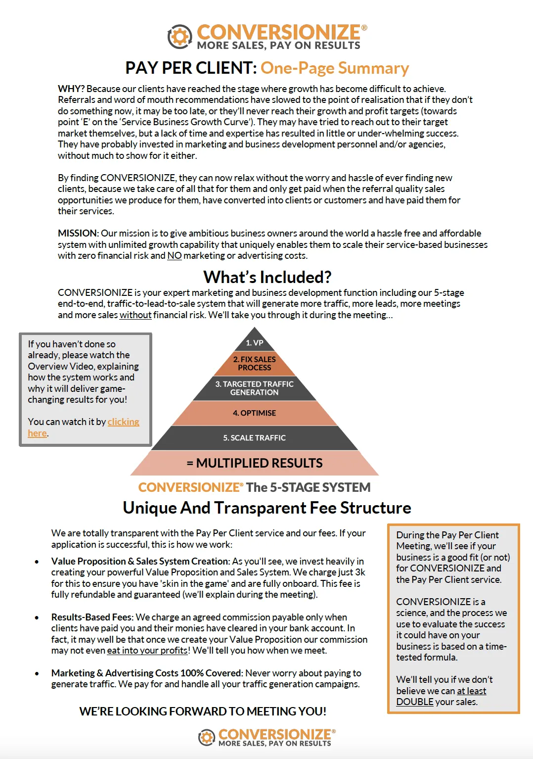 "CONVERSIONIZE is a unique and risk-free way to grow your service-based business.